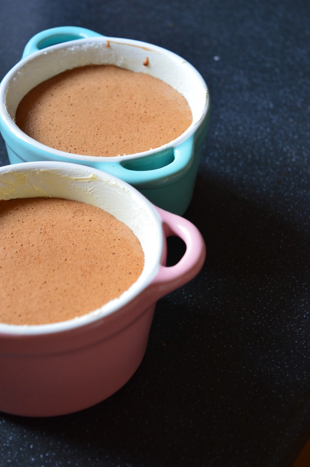 - Barrar dois ramequins com um pouco de manteiga e salpicá-los generosamente com açúcar, agitando bem para que este forme uma camada uniforme por todo o ramequim. Reservar.